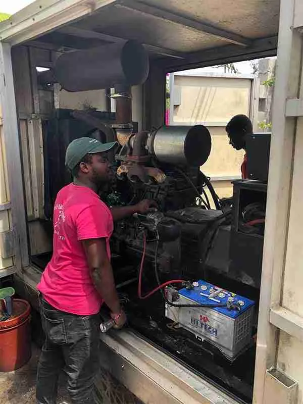 Our long-term solution to bringing power back to GLA: Purchase a new 45KW generator, in stock at the vendor in PAP. Hire a mechanic to utilize whatever parts we can from our broken generators in order to rebuild one whole one for use as back up. Purchase and install a metal fuel tank with filter to replace the plastic ones that have weathered over the last ten years of use and been leaching water into the diesel supply.